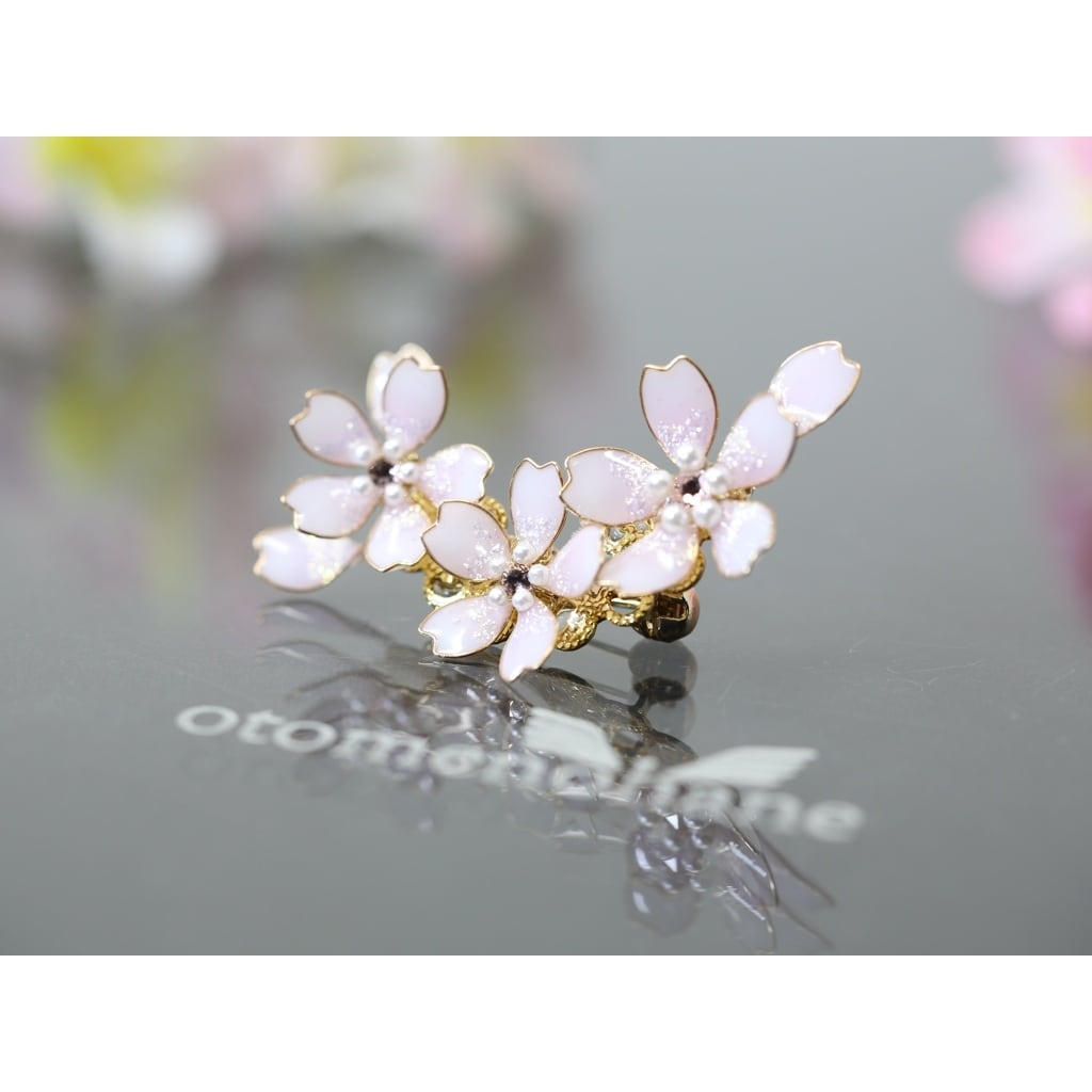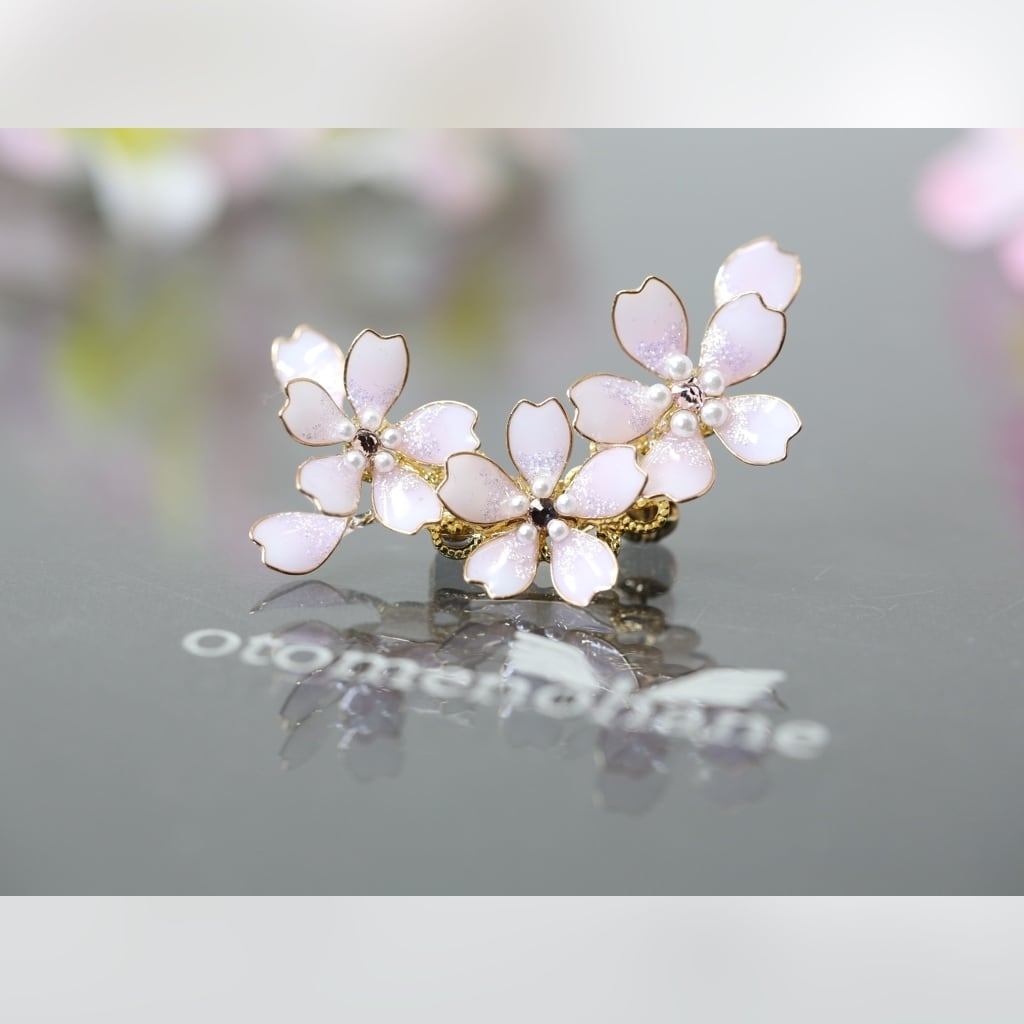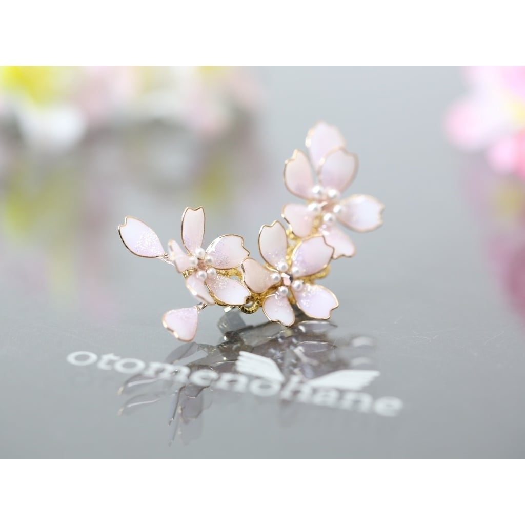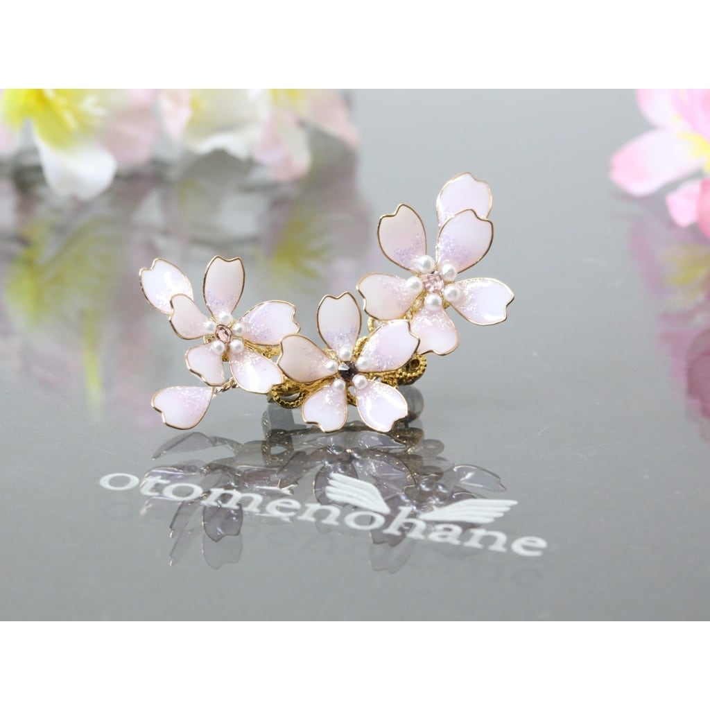 私の作品を置いていただいている委託販売のお店で、「さくら舞う イヤーカフ」や「さくら舞う ヘアコーム」をご覧になったお客様のご希望で、ブローチにしました。